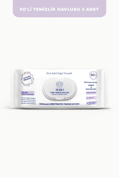 SUBO YÜZEY TEMİZLİK HAVLUSU 50 'Lİ LAVANTA 3X50