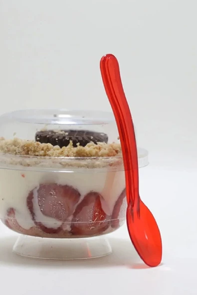 Transparan Parlak Kırmızı Dalgalı Dondurma-Tatlı Kaşık 50li