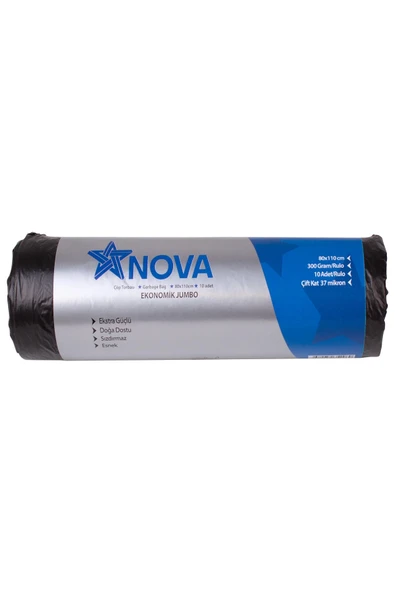 Jumbo Boy Çöp Torbası Siyah (300gr) 80x110cm 10lu