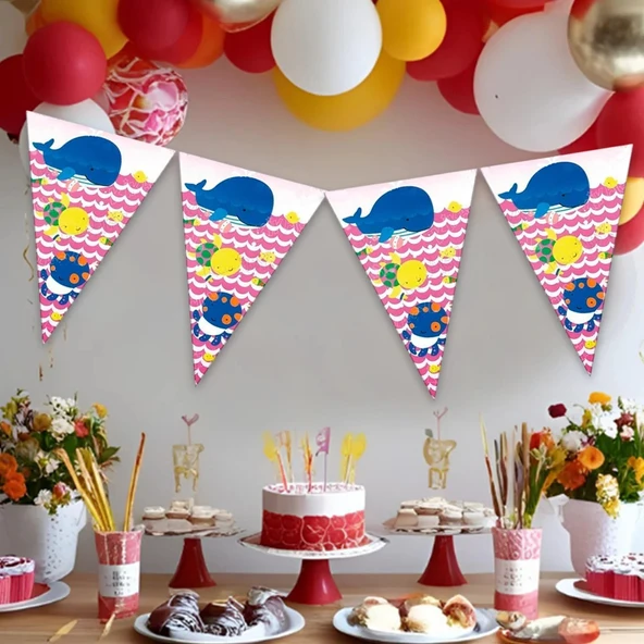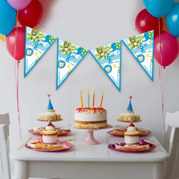 Neşeli Hayvanlar Mavi Üçgen Flama