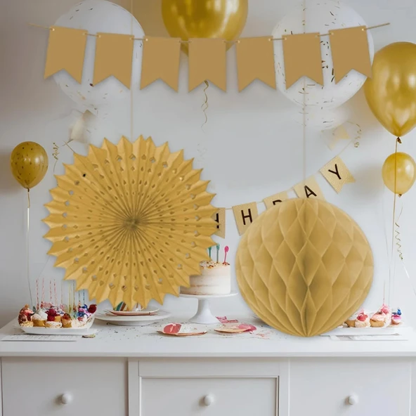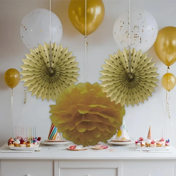 Altın Ponpon / Yelpaze Süs Seti 3'lü