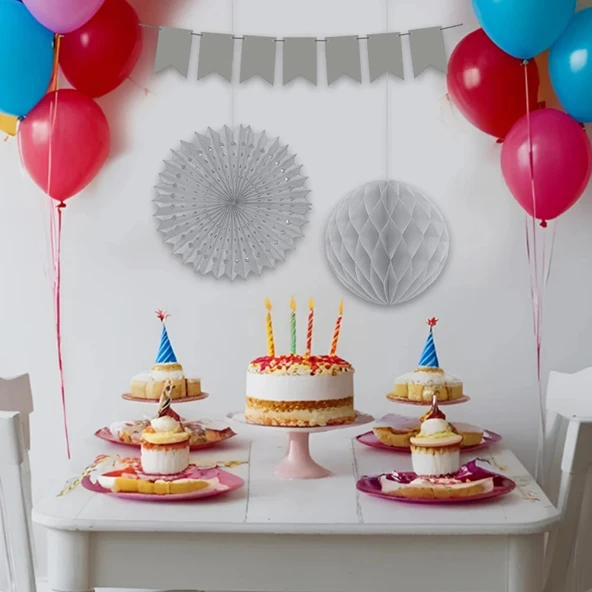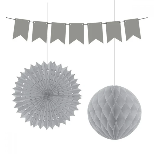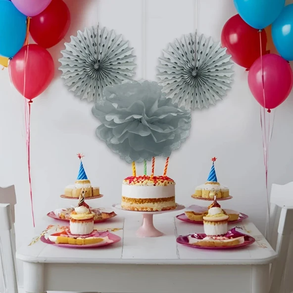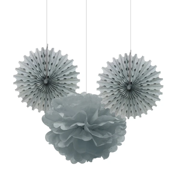Gümüş Ponpon / Yelpaze Süs Seti 3'lü