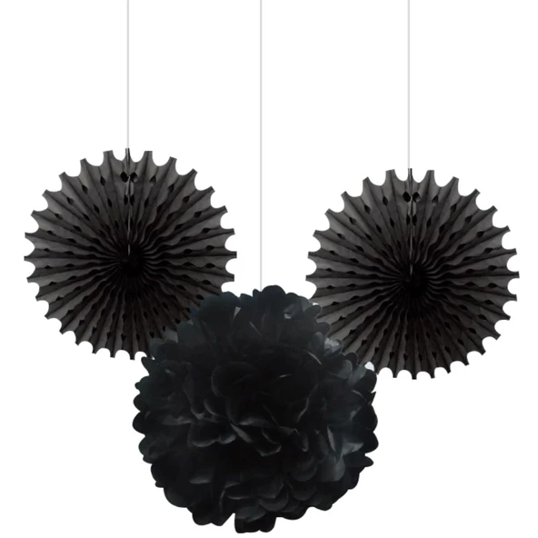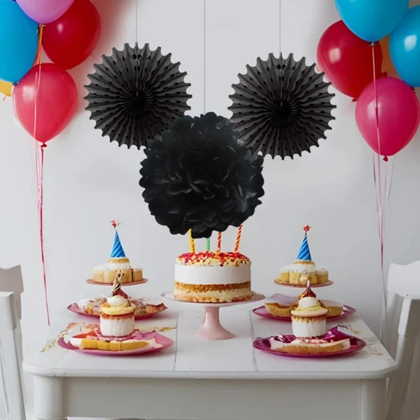 Siyah Ponpon / Yelpaze Süs Seti 3'lü