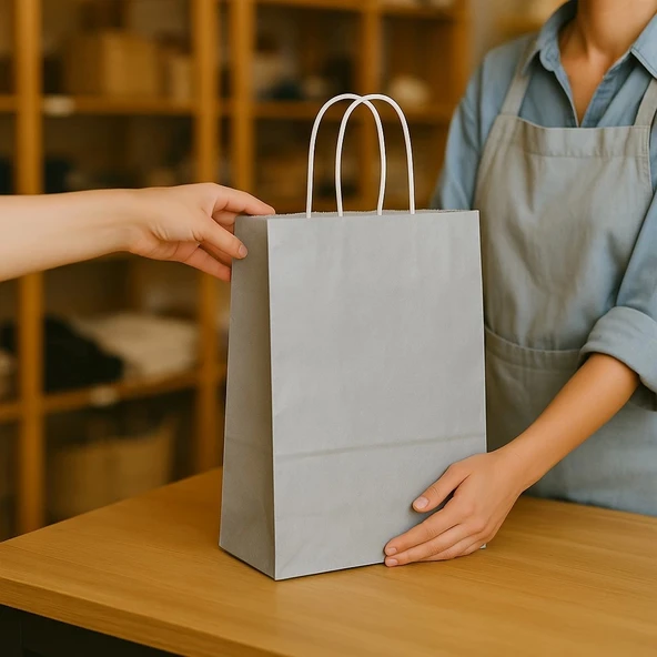 Gümüş Büküm Saplı Kraft Çanta 18x24cm