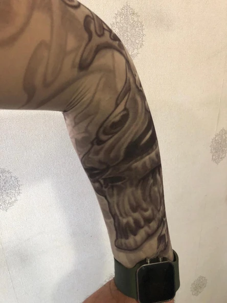 Giyilebilir Çorap Dövme Kuru Kafa Dövmesi Çift Kol
