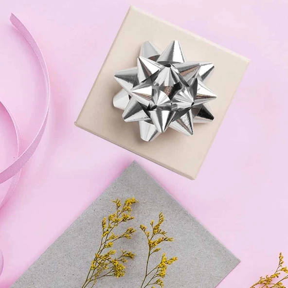 No:2 Gümüş Renkli Mat Metalik Hediye Paketi Süsü