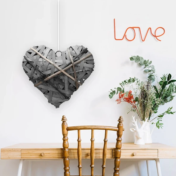 Dekoratif Naturel Hasır Örgü Kalp Süs 25 cm