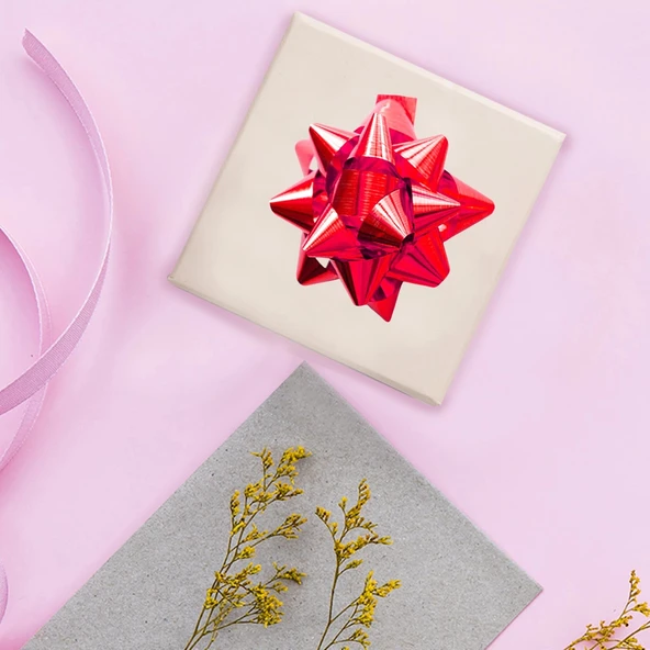 No:5 Kırmızı Metalik Hediye Paketi Süsü