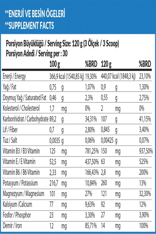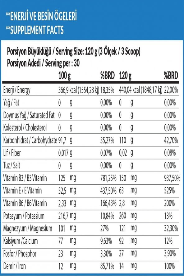 High Nutrition maltodextrin, maltodextrın aromasız 3000 gr 120 Servis -glikojen