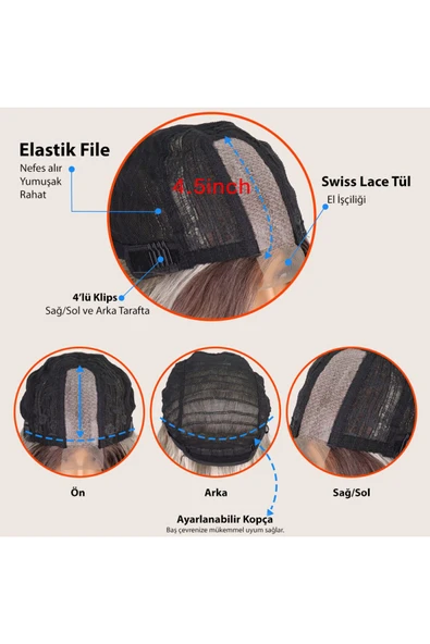 SUZAN PERUK U Part Peruk yarımay çıtçıt Gerçek Saç Röfleli4