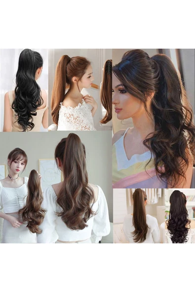SUZAN PERUK 70cm Postiş Tokalı Kabarık Dalgalı At Kuyruğu - Koyu Kahve
