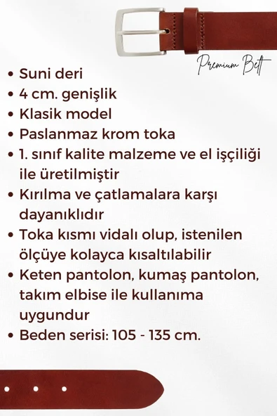 Kahverengi Suni Deri Dikişli Model 4.5 Cm.lik Spor Kot Kemer - 4513-61-22ks