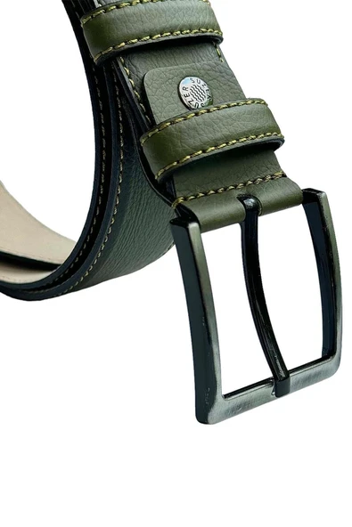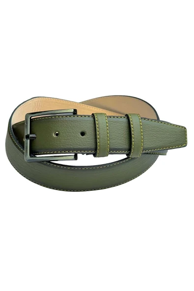 Haki Yeşil Suni Deri Dikişli 4 cm.lik Klasik Kemer - 7400-810
