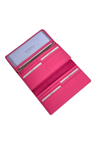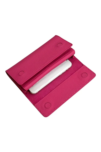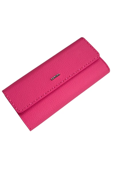 Fuşya %100 Hakiki Deri Dikiş Detaylı Gizli Mıknatıslı Kapaklı Özel Tasarım Kadın Cüzdan Portföy