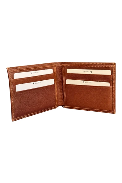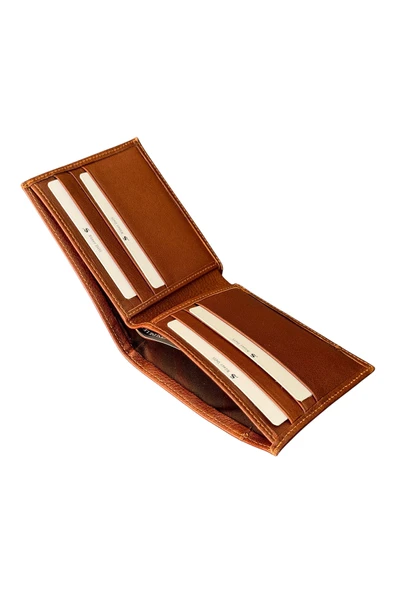 Mini Boy İkiye Katlı Slim Basic Model Hakiki Deri Kredi Kartlık Taba