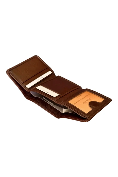 Üçe Katlamalı Model Mıknatıslı Hakiki Deri Erkek Cüzdan - Kahverengi