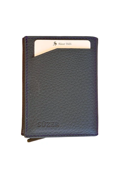 Hakiki Deri Otomatik Mekanizmalı Kredi Kartlık Lacivert