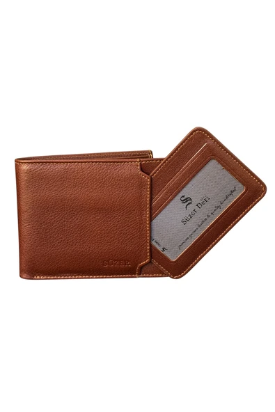 Ayrılabilir Kartlıklı Yatay Klasik Model Hakiki Deri Erkek Cüzdan Taba