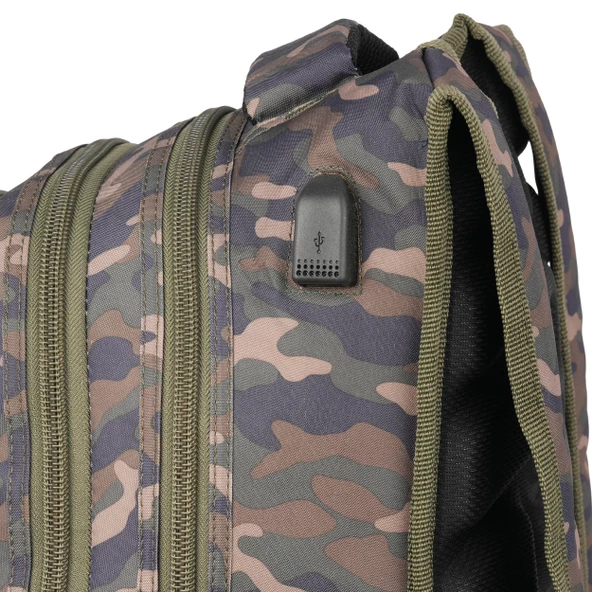 3 Bölmeli Su İtici Kumaş USB Giriş Aparatlı Okul Sırt Çantası RLX2228-Kamuflaj