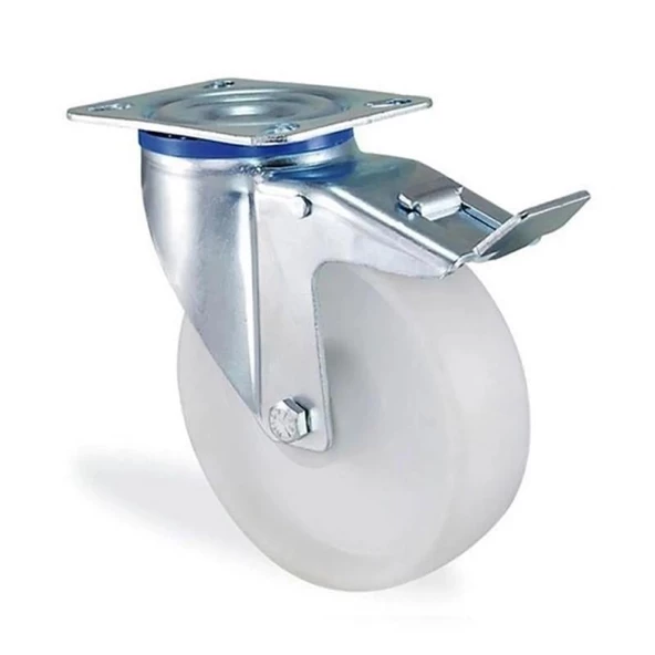 Kama Ø125 Polipropilen Dönerli Frenli Tekerlek Flanş Bağlantılı 150 Kg. Kapasiteli