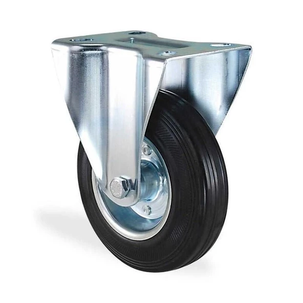 Kama Ø125 Kauçuk Sabit Tekerlek Flanş Bağlantılı 100 Kg. Kapasiteli Burçlu