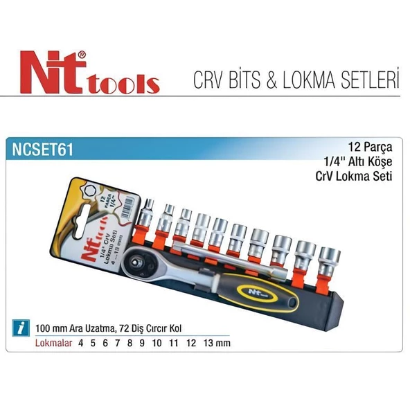 Nt Tools 12 Parça 1/4" Altıköşe Lokma Seti NCSET61