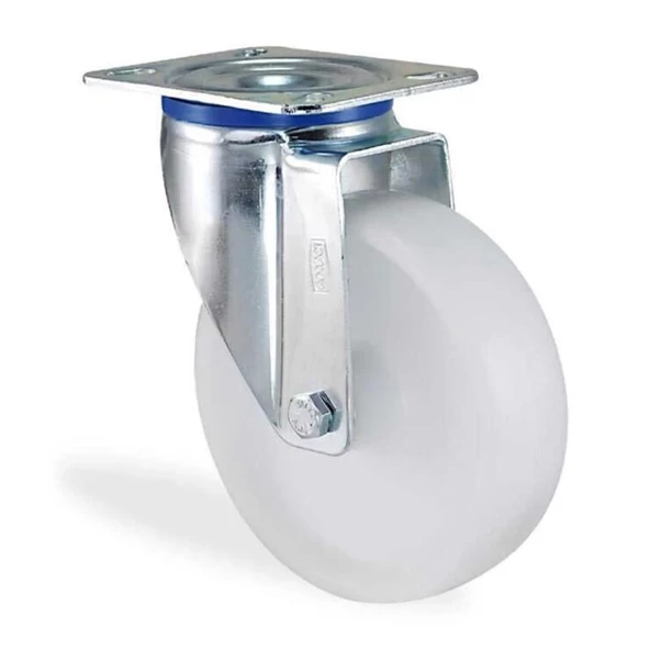 Kama Ø125 Polipropilen Dönerli Tekerlek Flanş Bağlantılı 150 Kg. Kapasiteli