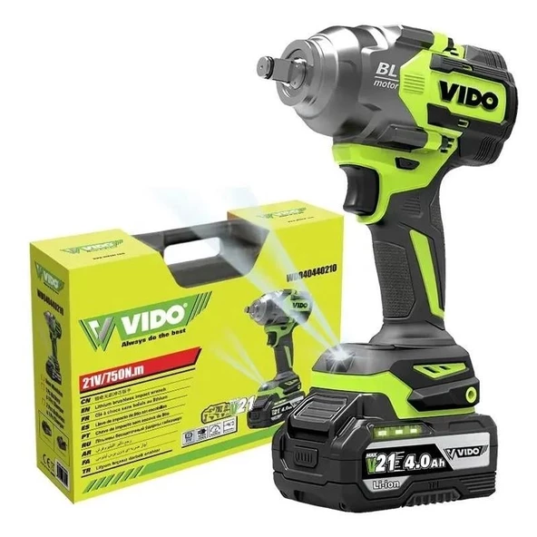 Vido Profesyonel 21V Akülü Darbeli Somun Sökme 1/2" Çift Akü Kömürsüz Motor WD040440210