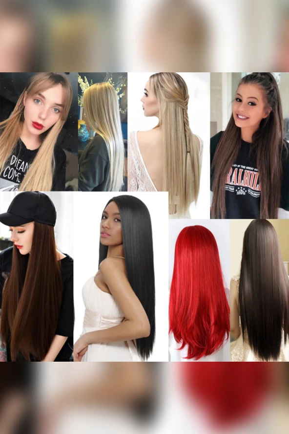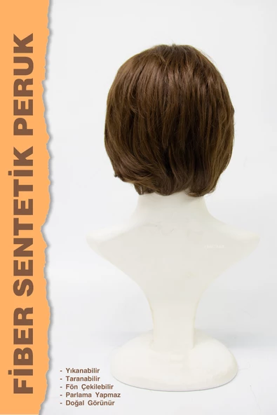 Perçemli Düz Kısa Boy Fiber Sentetik Peruk