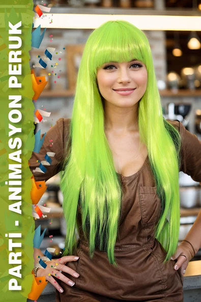 Parti / Animasyon / Tiyatro Peruk - Küt Kahküllü Fiber Sentetik - Neon Yeşil