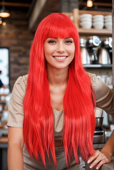Parti / Animasyon / Tiyatro Peruk - Uzun Kahküllü Fiber Sentetik Peruk - Kırmızı