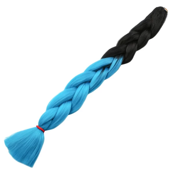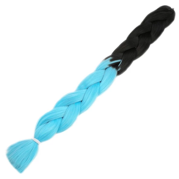 Afrika Örgüsü Ve Rasta İçin Sentetik Ombreli Saç - Siyah / Turkuaz Mavi 2-24-PM-14X