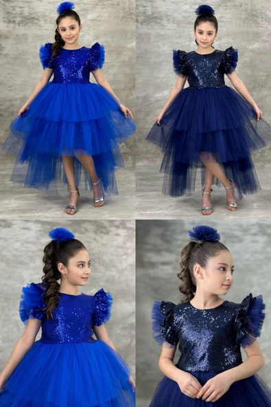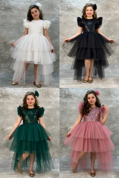 Tütülü Kuyruklu Pul Payet Kız Çocuk Elbisesi