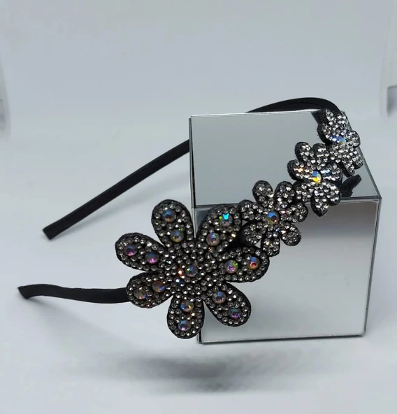 Çiçek Desenli Parlak Taşlı Abiye Taç, Esnek Abiye Tacı