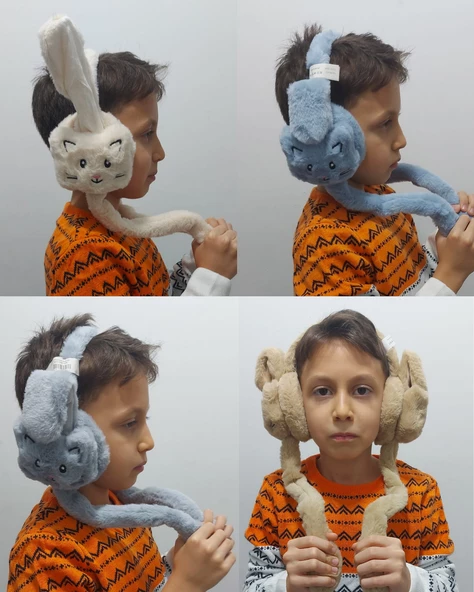 Peluş Kedili Hareketli Oynar Kulaklı Çocuk Kulak Isıtıcı Koruyucu