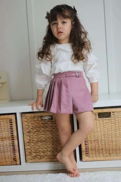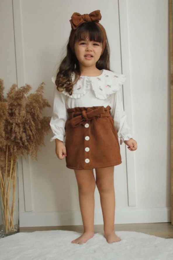 Süet Şort Etek Bluz Kız Çocuk Alt Üst Tarz Takım