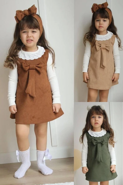 Kız Çocuk Süet Elbise Bluz Tarz Takım