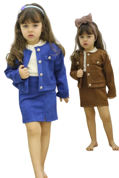 Kız Çocuk Süet Ceket Etek Bady Üç Parça Tarz Takım