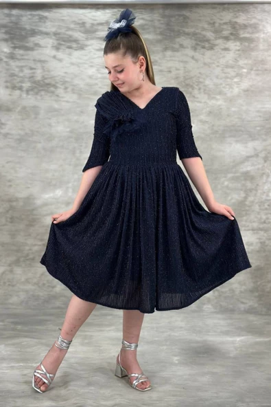 Pullu Kuyruklu Tütülü Kız Çocuk Elbisesi