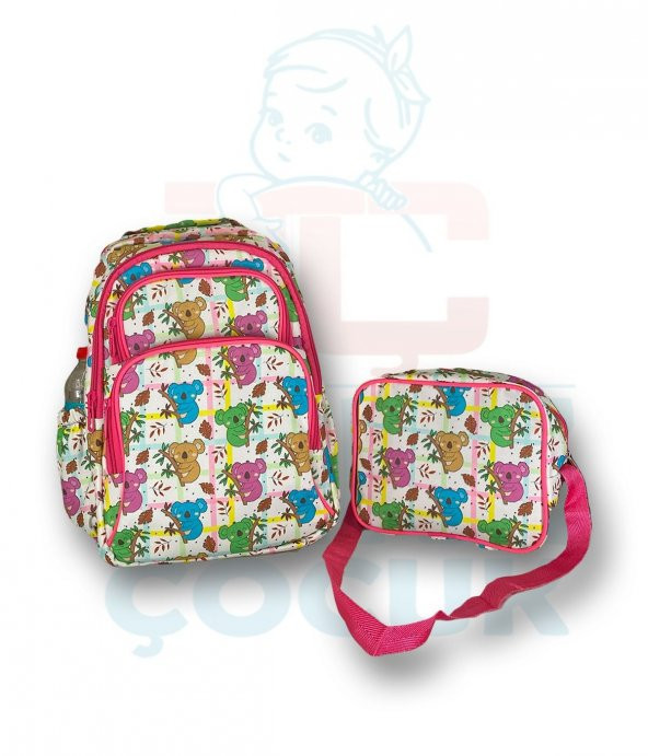 Koala Desen Üç Gözlü Beslenmeli Okul Çantası