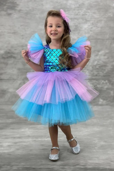 Tütülü Kuyruklu Pul Payet Kız Çocuk Elbisesi
