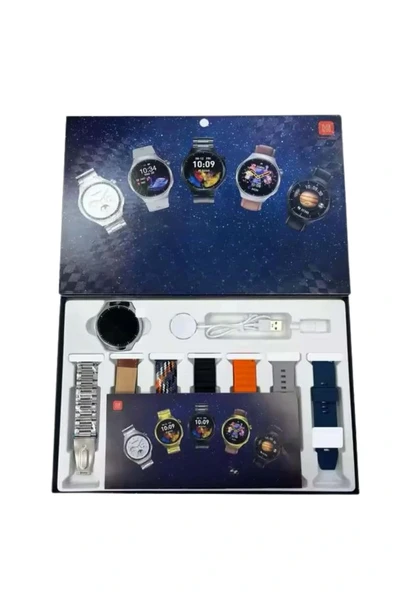 Unısex Yuvarlak Ekranlı 7 Kordonlu Akıllı Saat GPS Destekli Çoklu Kordon Seçeneği