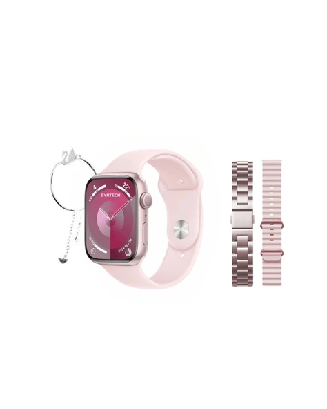 3 Kordonlu Pembe Amoled Ekran Akıllı Saat ve Yeni Nesil Pro Kablosuz Bluetooth Kulaklık ANC/ENC