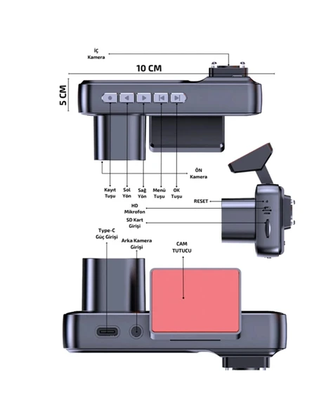Video ve Fotoğraf Kaydedici Sürüş Kamerası Ön ve Arka Çift Kameralı