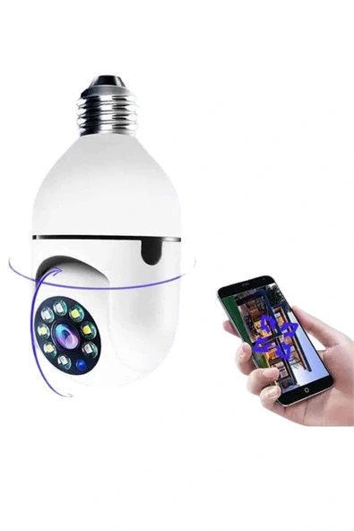 Akıllı Kamera Wifi Kamera Duylu Ampul Görünümlü 360 Derece Dönebilen Ev Kamerası