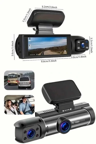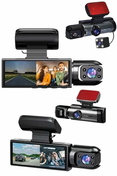 Üç Kameralı 1080p Full HD Araç İçi Kamera – G-Sensörlü ve Gece Görüşlü