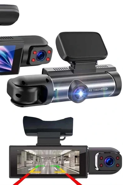 Üç Kameralı Araç Kamerası Full HD Gece Görüş G-Sensör