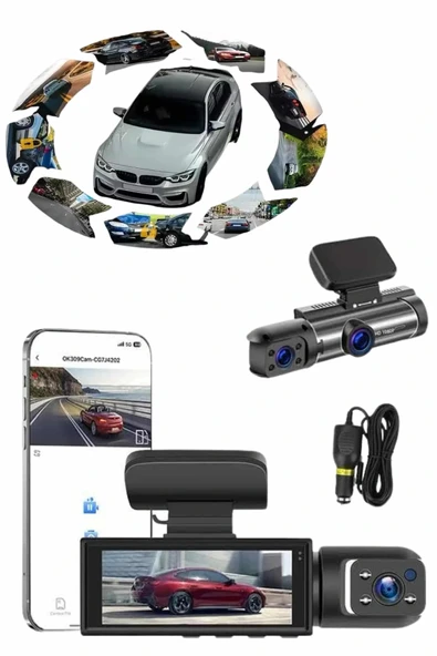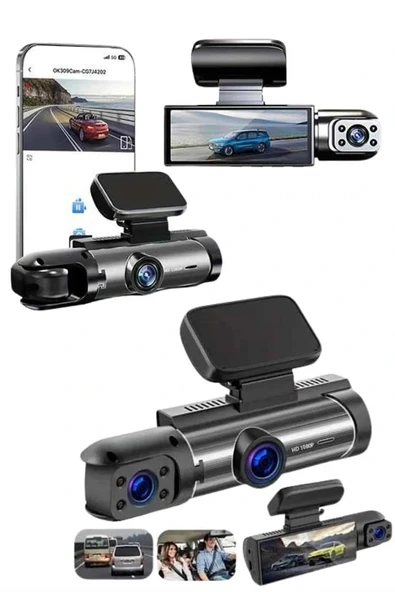 WiFi Destekli Araç Kamerası – 3 inç Ekran, 1080P Ön ve 720P İç Kamera