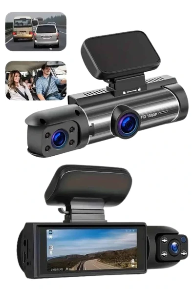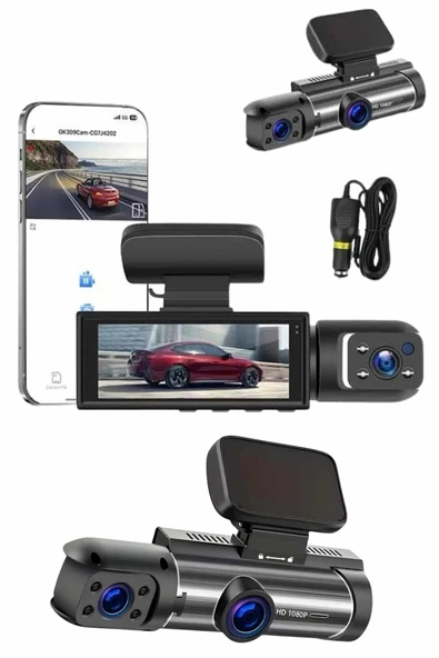 WiFi Destekli Araç Kamerası – 3 inç Ekran, 1080P Ön ve 720P İç Kamera
