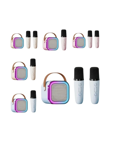 Kablosuz Karaoke Hoparlör – Çift Mikrofon ve LED Işıklı